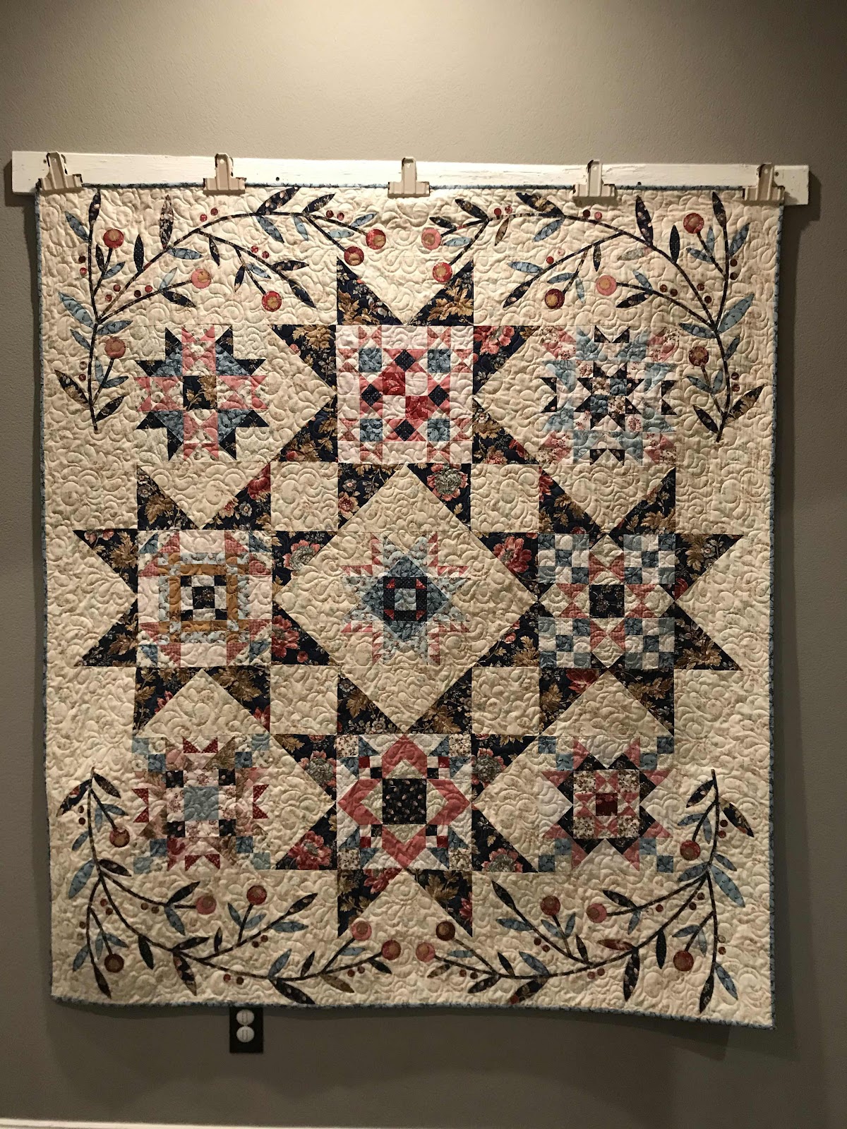 I machine appliquéd everything on. Picture was taken at night so lighting is not that great.